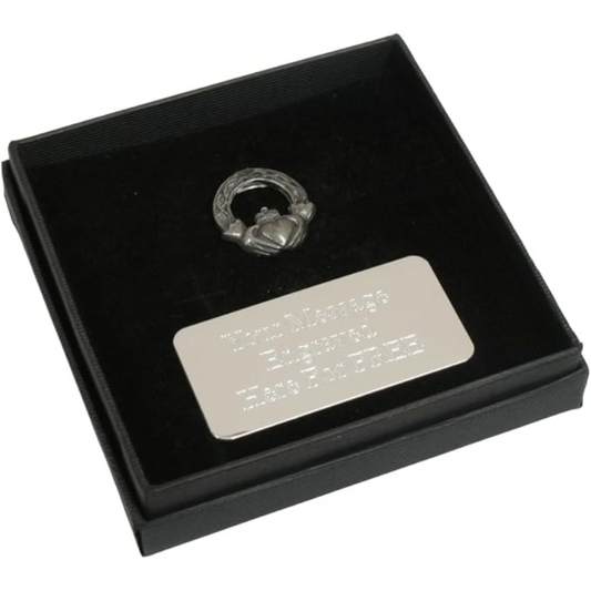 Claddagh Ring Pewter Pin Badge With Cufflinks & Tie Slide Option