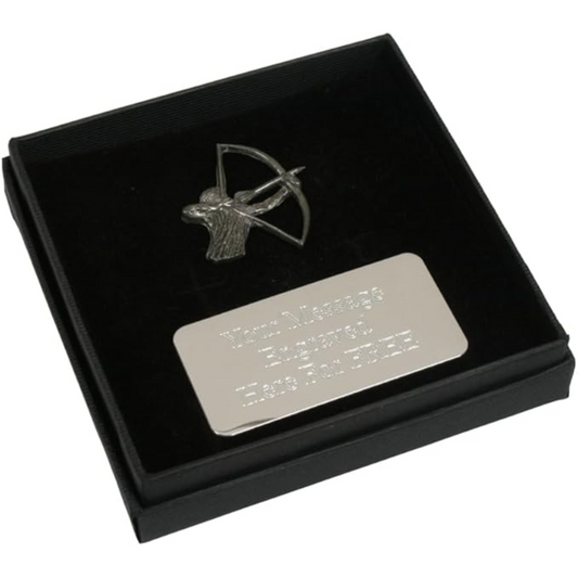 Archer Pewter Pin Badge With Cufflinks & Tie Slide Option