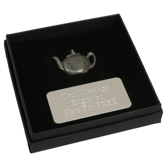 Teapot Pewter Pin Badge With Cufflinks & Tie Slide Option