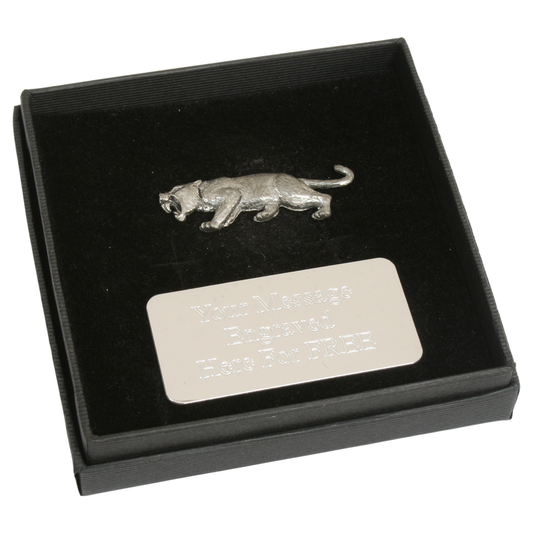 Saber Tooth Tiger English Pewter Pin Badge, Tie Slide & Cufflinks