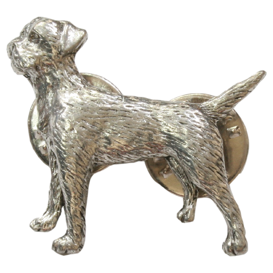 Border Terrier Pewter Pin Badge With Cufflinks & Tie Slide Option Dog Gift