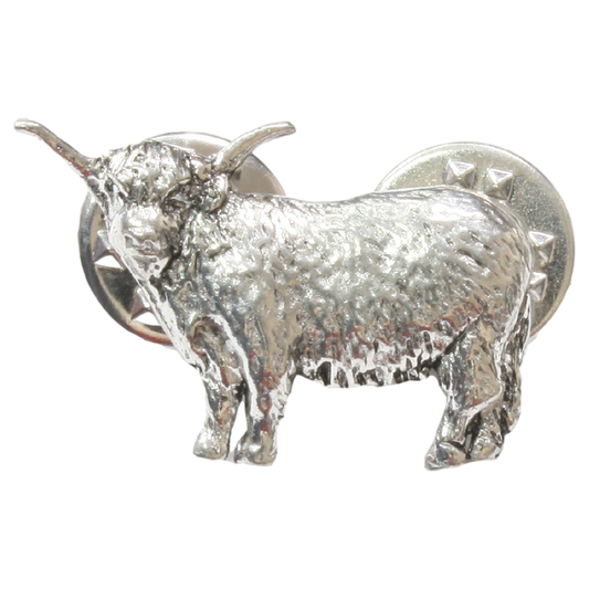 Highland Cow English Pewter Pin Badge, Tie Slide & Cufflinks