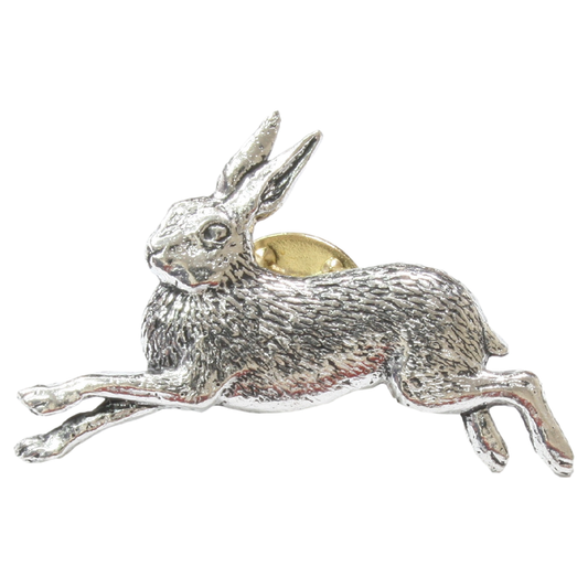 Hare Running Pewter Pin Badge With Cufflinks & Tie Slide Option