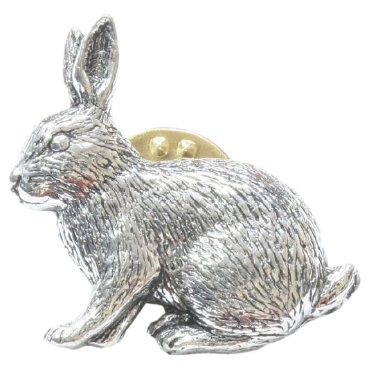 Rabbit Pewter Pin Badge With Cufflinks & Tie Slide Option