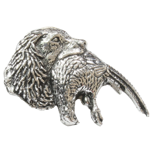 Spaniel & Pheasant Pewter Pin Badge With Cufflinks & Tie Slide Option Dog Gift