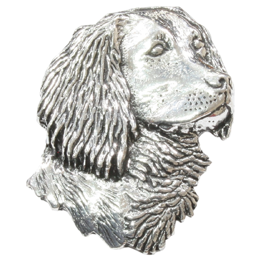 Spaniel Head Pewter Pin Badge With Cufflinks & Tie Slide Option Dog Gift