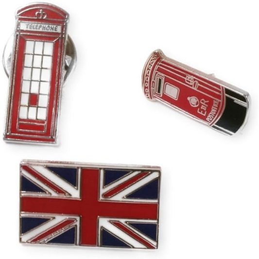 British Set of 3 English Enamel Pin Badges Personalised Gift Box