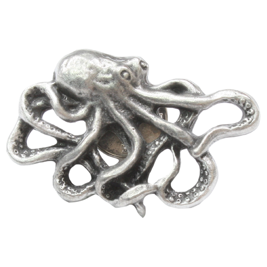 Octopus Pewter Pin Badge With Cufflinks & Tie Slide Option